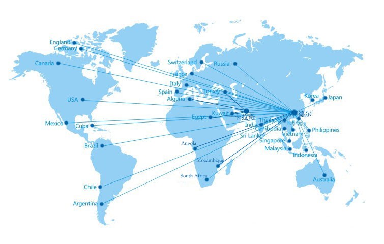 全世界各個(gè)國(guó)家和地區(qū)。目前占有市場(chǎng):中國(guó)、美國(guó)、東南亞、中東、北非、南美等。至2018年11月,我們的市場(chǎng)除了在中國(guó)銷售到25個(gè)省份之外,還進(jìn)入了美國(guó)、印度尼西亞、馬來(lái)西亞、孟加拉國(guó)、斯里蘭卡、越南、巴基斯坦、卡塔爾、阿爾及利亞、安哥拉、莫桑比克、智利等12個(gè)國(guó)家。