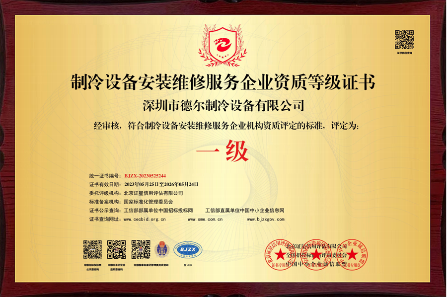 制冷設(shè)備安裝一級(jí)資質(zhì)證書
