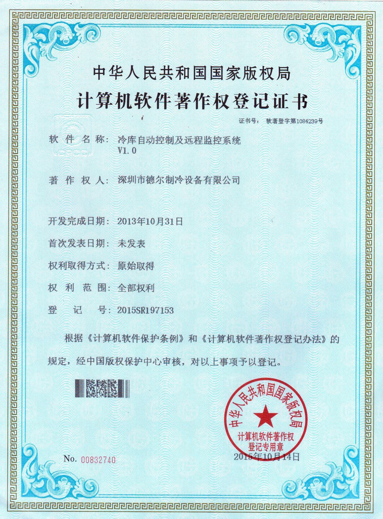 冷庫(kù)自動(dòng)控制及遠(yuǎn)程監(jiān)控系統(tǒng) 軟件著作權(quán)證書