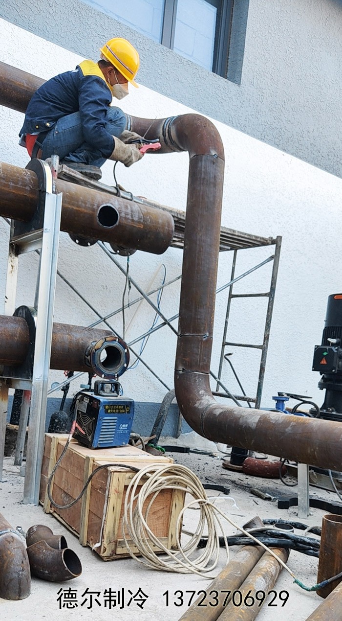 在下面的這張照片中,德?tīng)栔评涞墓ぷ魅藛T的著裝,一眼就能看出北京3A冰上空間滑冰場(chǎng)是在特殊時(shí)期建設(shè)的。我們的工程施工人員正在進(jìn)行管道焊接與施工。