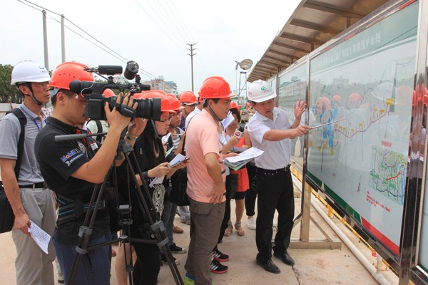 2014年6月5日,廣明高速SG06標(biāo)項(xiàng)目部作為廣明高速媒體行活動(dòng)的第一站迎來了境內(nèi)外24家媒體的30余位記者,分別就項(xiàng)目亮點(diǎn)、施工進(jìn)展等方面進(jìn)行了全面詳細(xì)的說明并接受專題采訪。